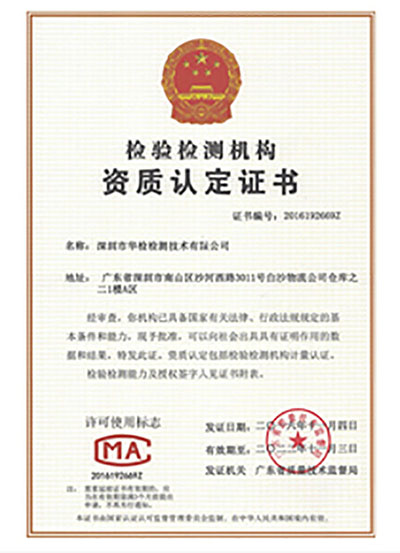 檢測資質認定證書
